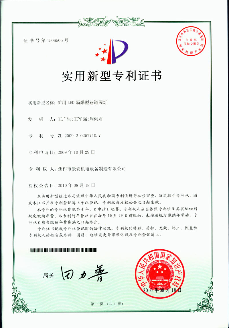 焦作景安公司始終堅持“以科技為先導,以市場為導向”的發(fā)展戰(zhàn)略,不斷進行新產(chǎn)品的研制和開發(fā),在國家“六五”到“九五”期間,承擔和參與了國家多項科技攻關(guān)項目。并被中國電器工業(yè)協(xié)會評定為“質(zhì)量可信產(chǎn)品”。特別是在礦用防爆燈領(lǐng)域,礦用隔爆型半導體(LED)照明燈具,2008年列入國家火炬計劃,獲2009年河南省工業(yè)和信息化廳的科技成果二等獎,并擁有多項國家專利。 |